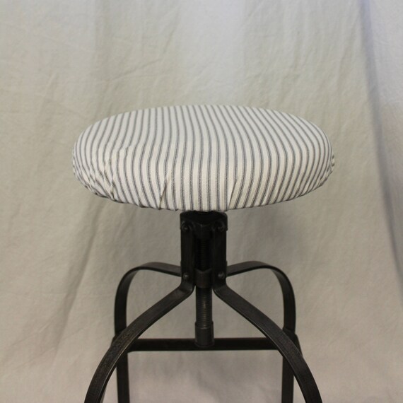 French Ticking Fitted Round Bar Stool Cover Grey Red Navy Etsy