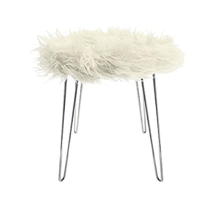Stool 4 Legged Small Contemporary Decorative Round Fluffy White