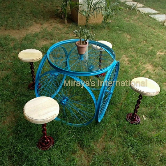 Wooden Garden Furniture Set Table And Stools Upcycled Cable Reel