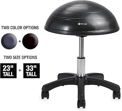 Gaiam balance ball stool assembly. Anti burst domed balance ball seat. Stool height ranges from 18 to 23 to fit most standard desks. A stiff lower back tight shoulders and a sore backside after sitting in a chair for hours at a time.