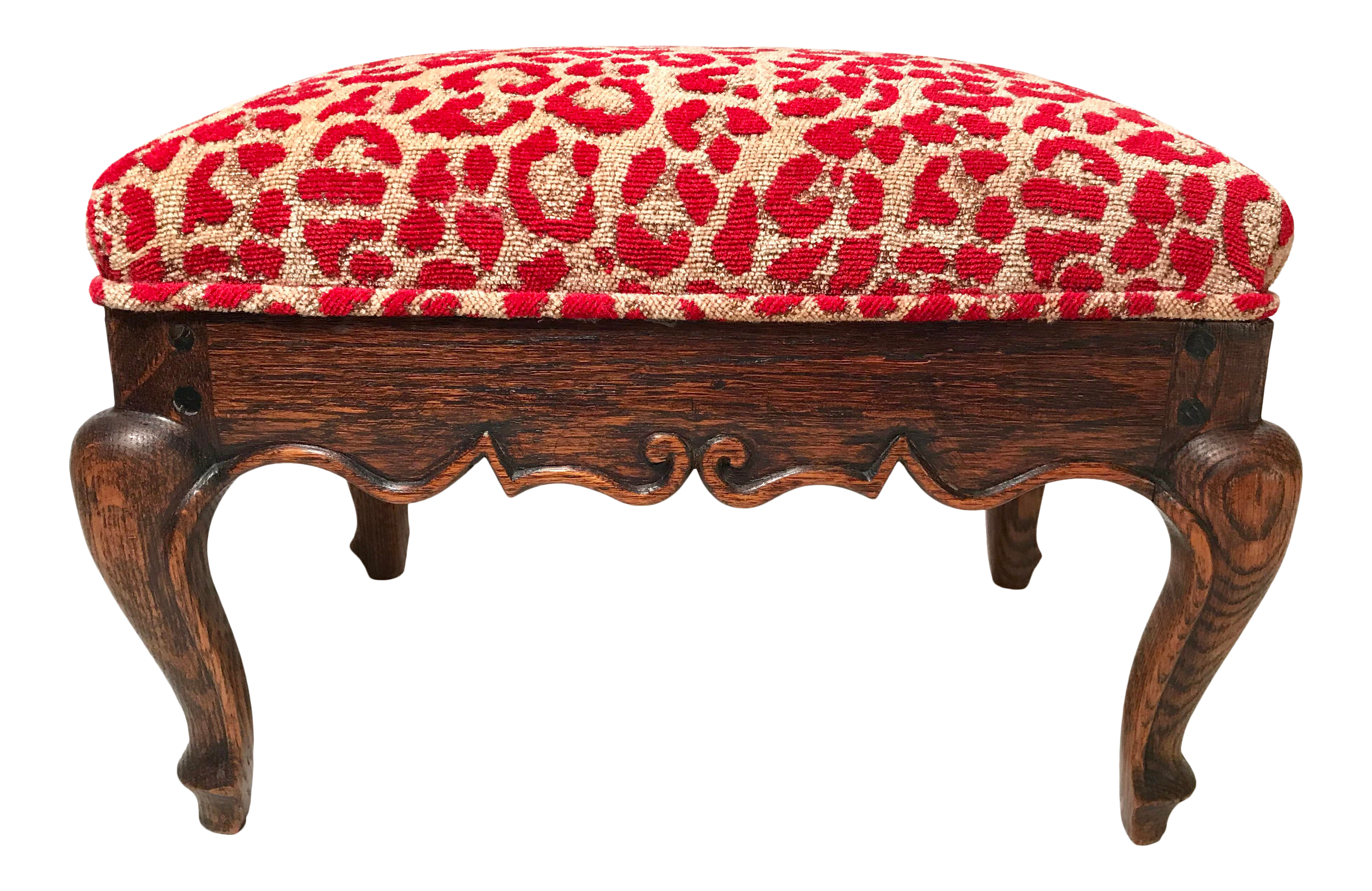 Sold French Carved Walnut Antique Bench Or Stool New Upholstery