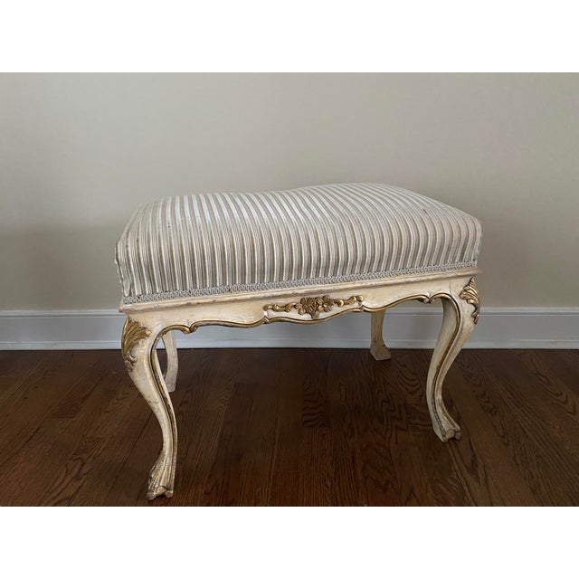 Vintage French Provincial Louis Xv Style Upholstered Stool Bench