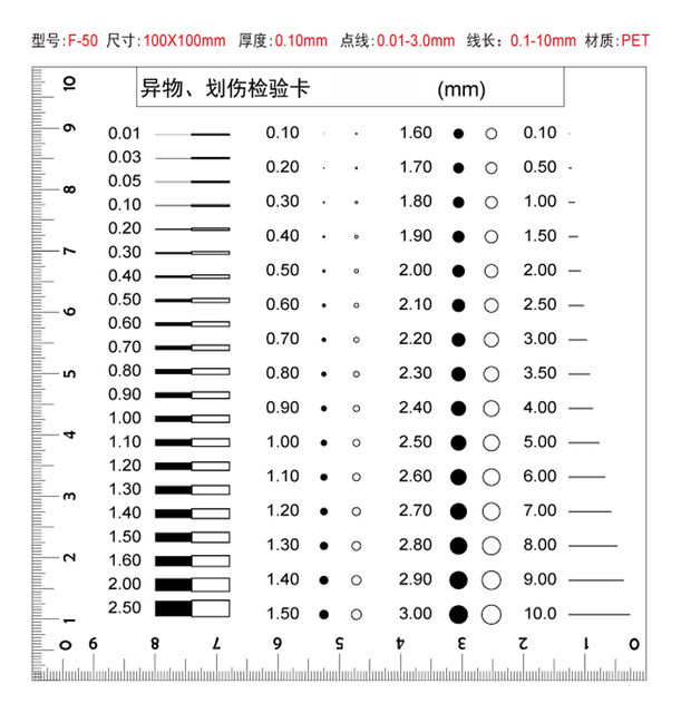 Stain Count Card Flint Ruler Point Gauge Comparison Card Table
