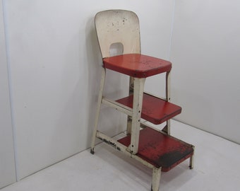 Vintage Red White Cosco Mid Century Kitchen Step Stool Fold Out