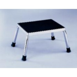 Foot stool with handrail chrome. Designed for safety it offers a non slip textured matting on the stool surface to ensure secure footing. Chrome step stool with handrail features. Attached handle provides for better balance.