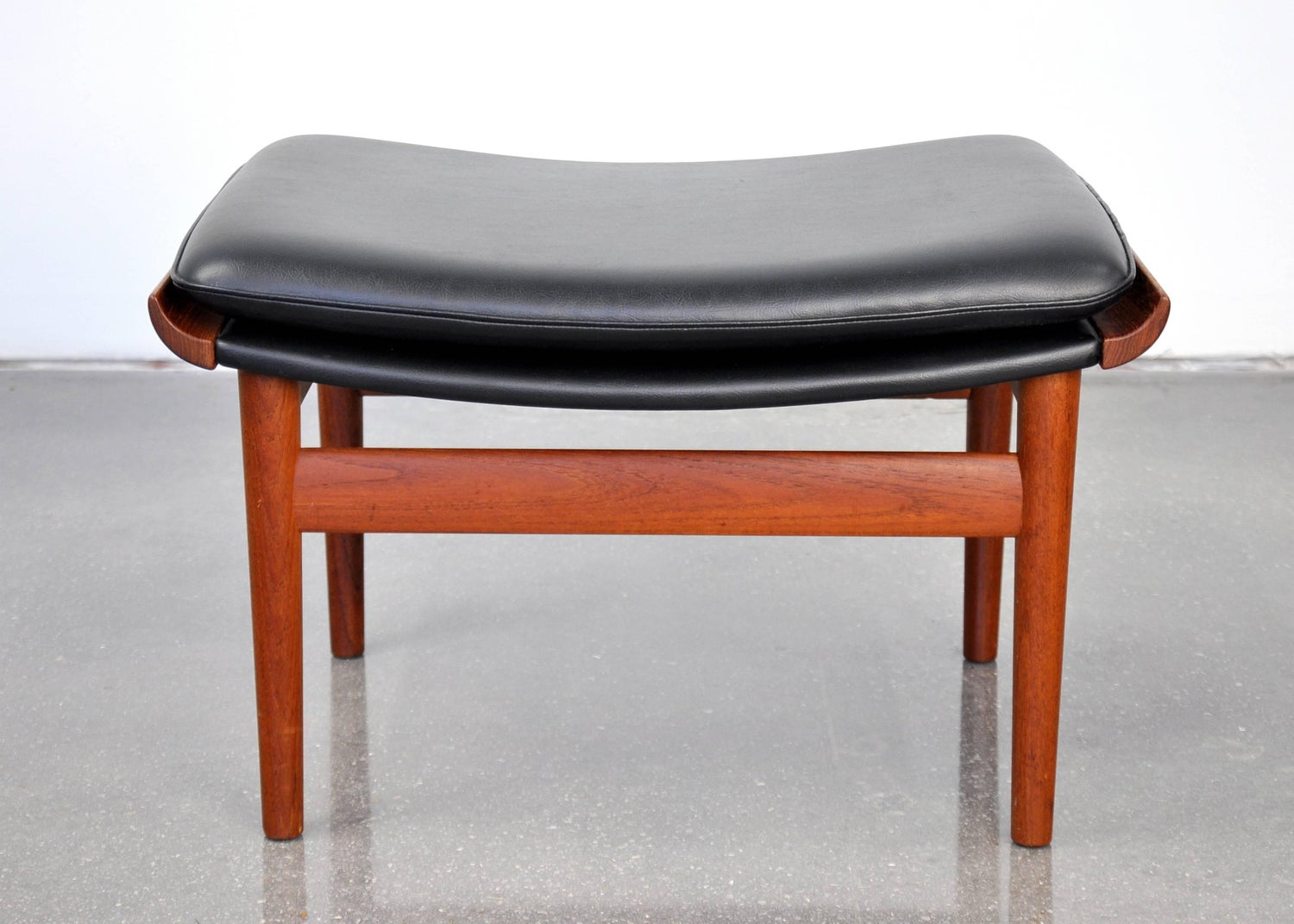 Finn Juhl For France And Son Black Leather And Teak Bwana Stool At