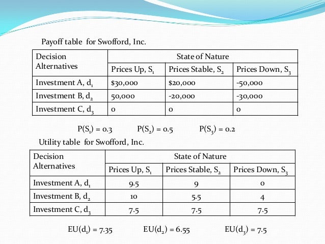 Game Theory How Was The Table Of Decision Analysis Formulation