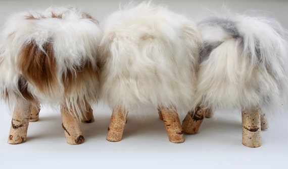 Fluffy Icelandic Sheepskin Stool With Wooden Legs Chair Etsy