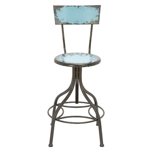Meatal Bar Stool With Back Circular Foot Rest Blue Olivia May
