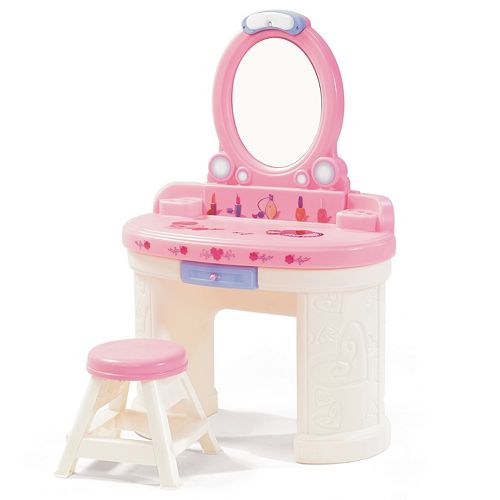Open the vanity doors and see arendelles castle appear in stunning lights. See moments from elsas amazing journey in frozen 2 and hear 2 iconic songs from frozen and frozen 2. Step2 pretty posh vanity with stool kids pretend play vanity set.