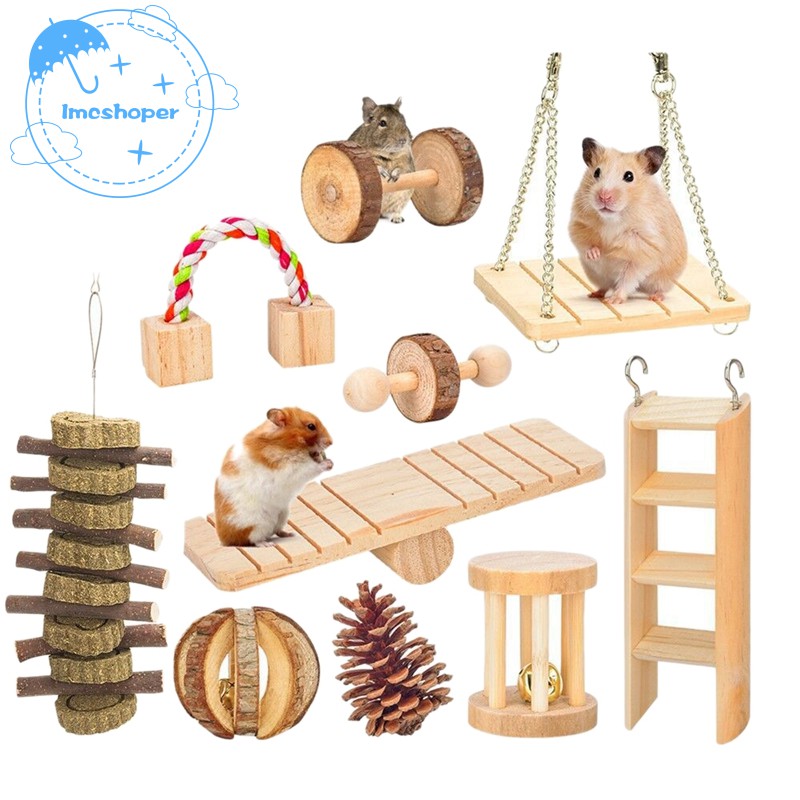 10 Pcs Set Hamster Chew Natural Wooden Gerbils Rats Chinchillas