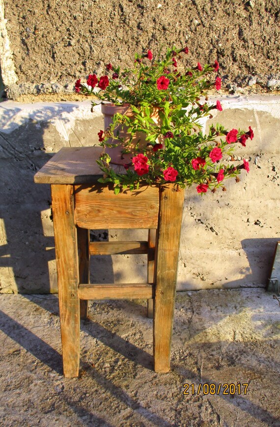 Vintage Wooden Stool Primitive Stool Rustic Stool Flower Etsy