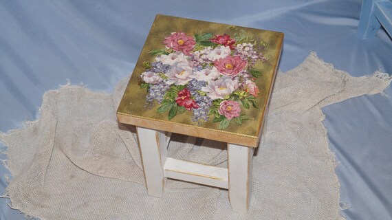 Lovely Flowers Wooden Step Stool For Living Room Victorian Etsy