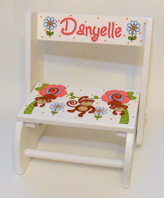 Child S Flip Stool Personalized With Monkeys And Flowers Etsy