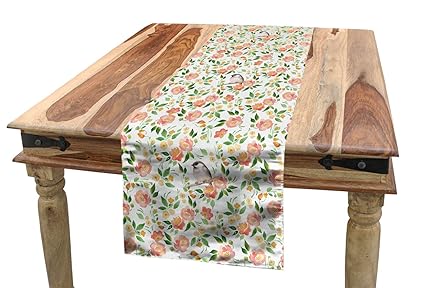 Amazon Com Ambesonne Floral Table Runner Flower Petals Blossoms