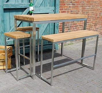Ingarden Teak Garden Bar Table High Benches High Bar Stools