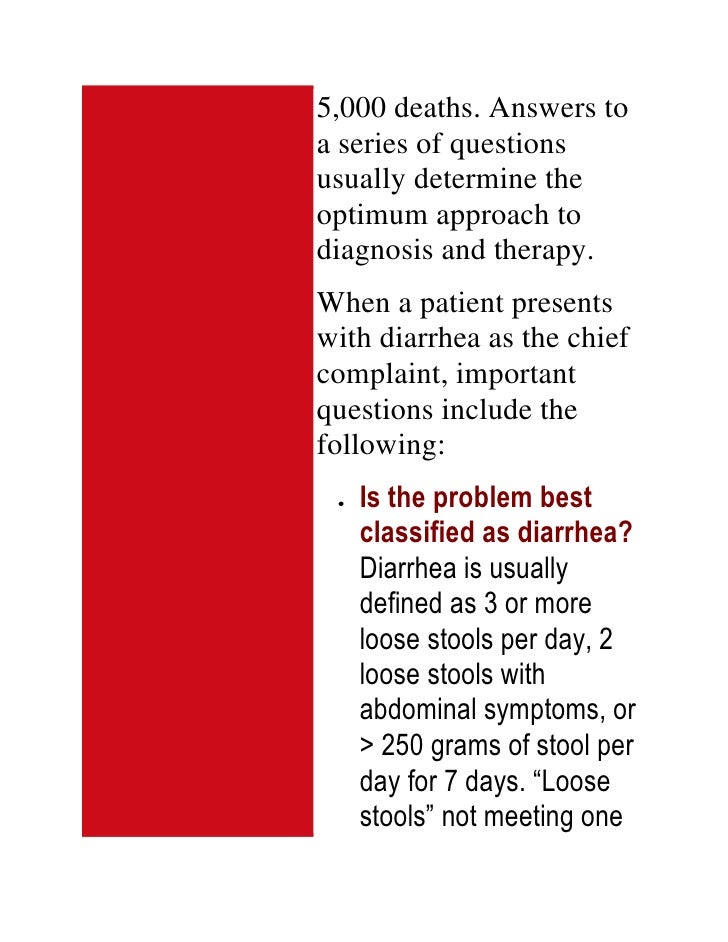 Clinical Presentation N Small Bowel Diarrheas Large Loose Stools