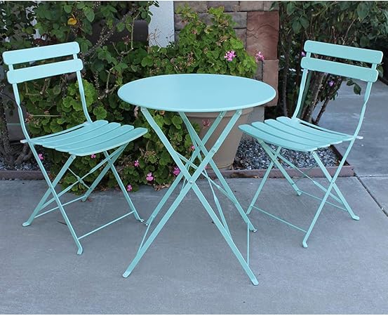 C 3 Piece Premium Steel Folding Outdoor Bistro Sets Decorative