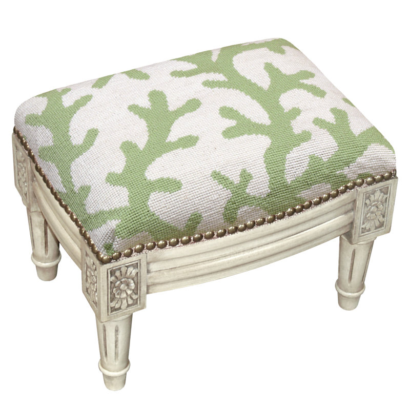 123 Creations Coral Wool Needlepoint Upholstered Footstool Ottoman