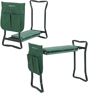 Luckyermore folding garden kneeler and seat garden bench lightweight garden stools with tool pouch and soft kneeling pad. Can be used for additional seating at a table or a stand alone bench. Garden kneeler and seatfolding garden kneeler folding bench stool with kneeling pad for gardening sturdy lightweight and practical protect your knees and clothes when gardening gardening gift.