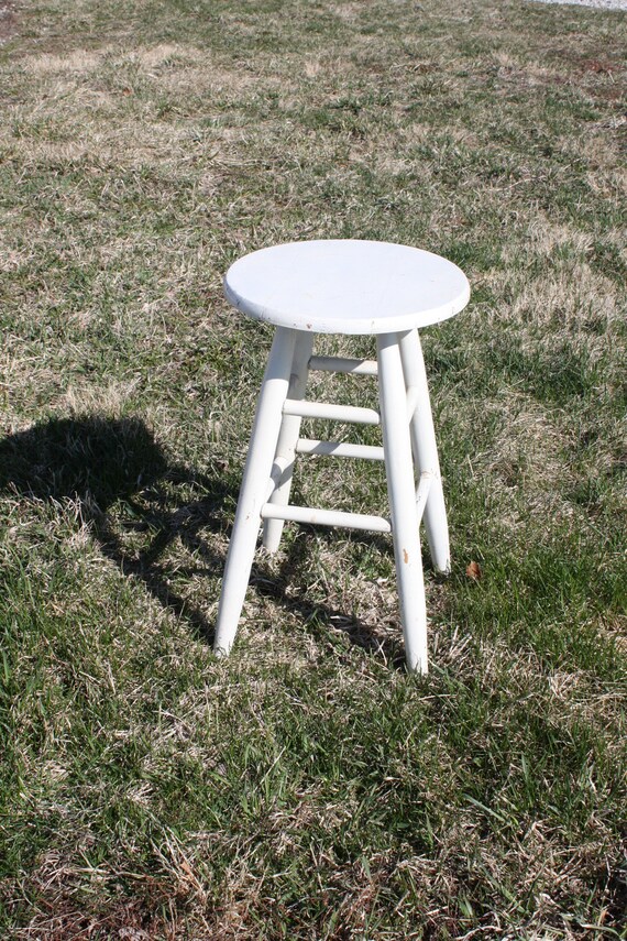 Vintage Milk Bar Tall Stool Wood Wooden White Painted Etsy
