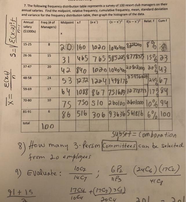 Solved 7 The Following Frequency Distribution Table Repr