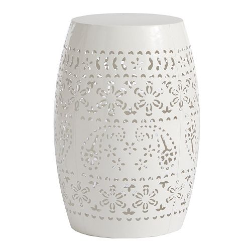 Huff White Cutwork Ceramic Garden Stool Accent Table