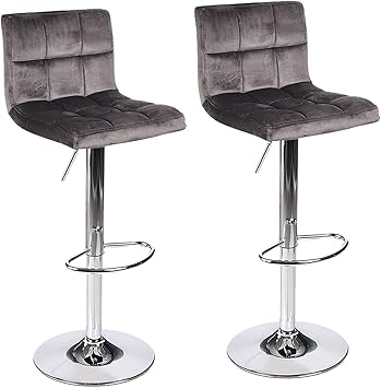 Amazon Com Elecwish Bar Stools Set Of 2 Gray Velvet Flannel