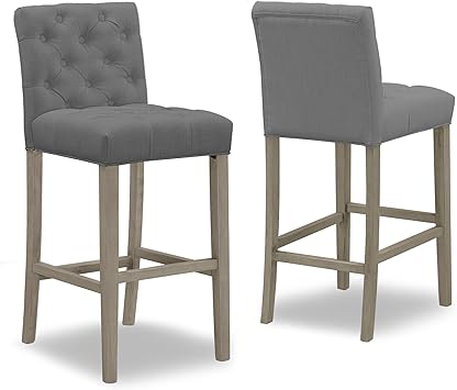 Amazon Com Set Of 2 Alee Grey Fabric Bar Stool With Tufted