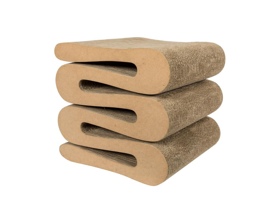 Gehry wiggle stool. Made of corrugated cardboard and hardboard to the edges. The architect frank gehry is known for his use of unusual materials. The wiggle stool is vaguely reminiscent of traditional african stools and like such predecessors makes an attractive accent in any interior.