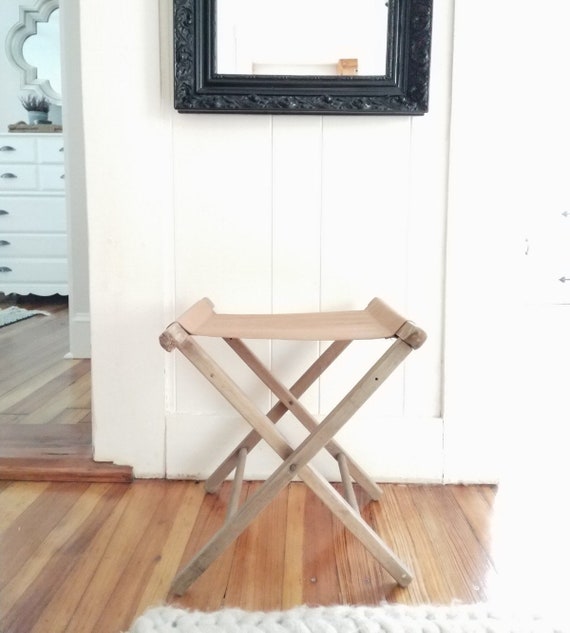 Leather Repurposed Vintage Folding Camp Stool Etsy