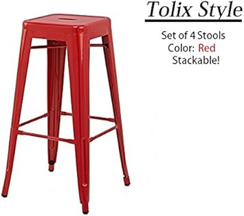 Amazon Com 24 Bar Height Bar Stools Red Set Of 4 Stackable