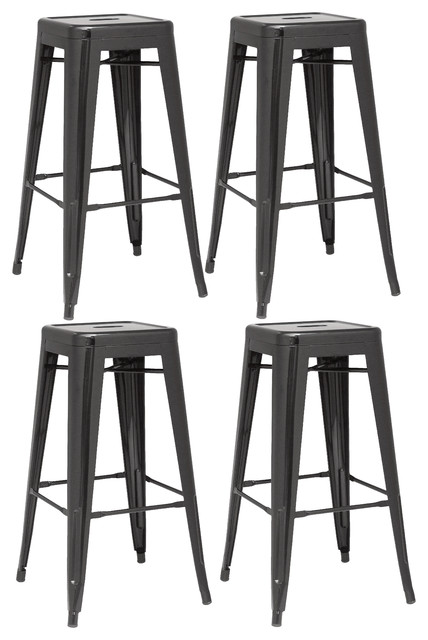 Chintaly Galvanized Steel Bar Stools Black Set Of 4 Industrial