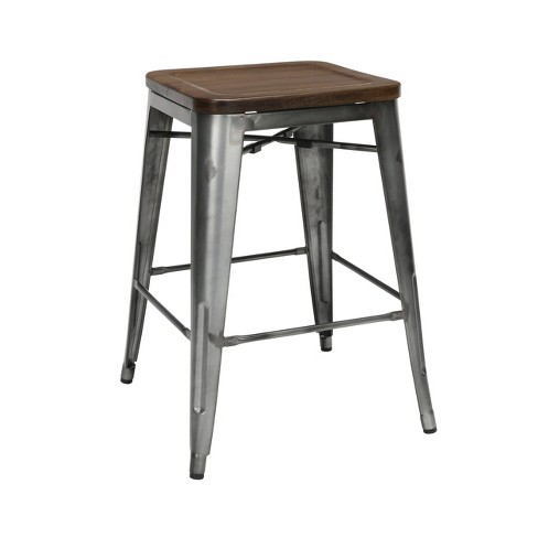 24 Ingrd Metal Stacking Counter Stool Set Of 2 Galvanized