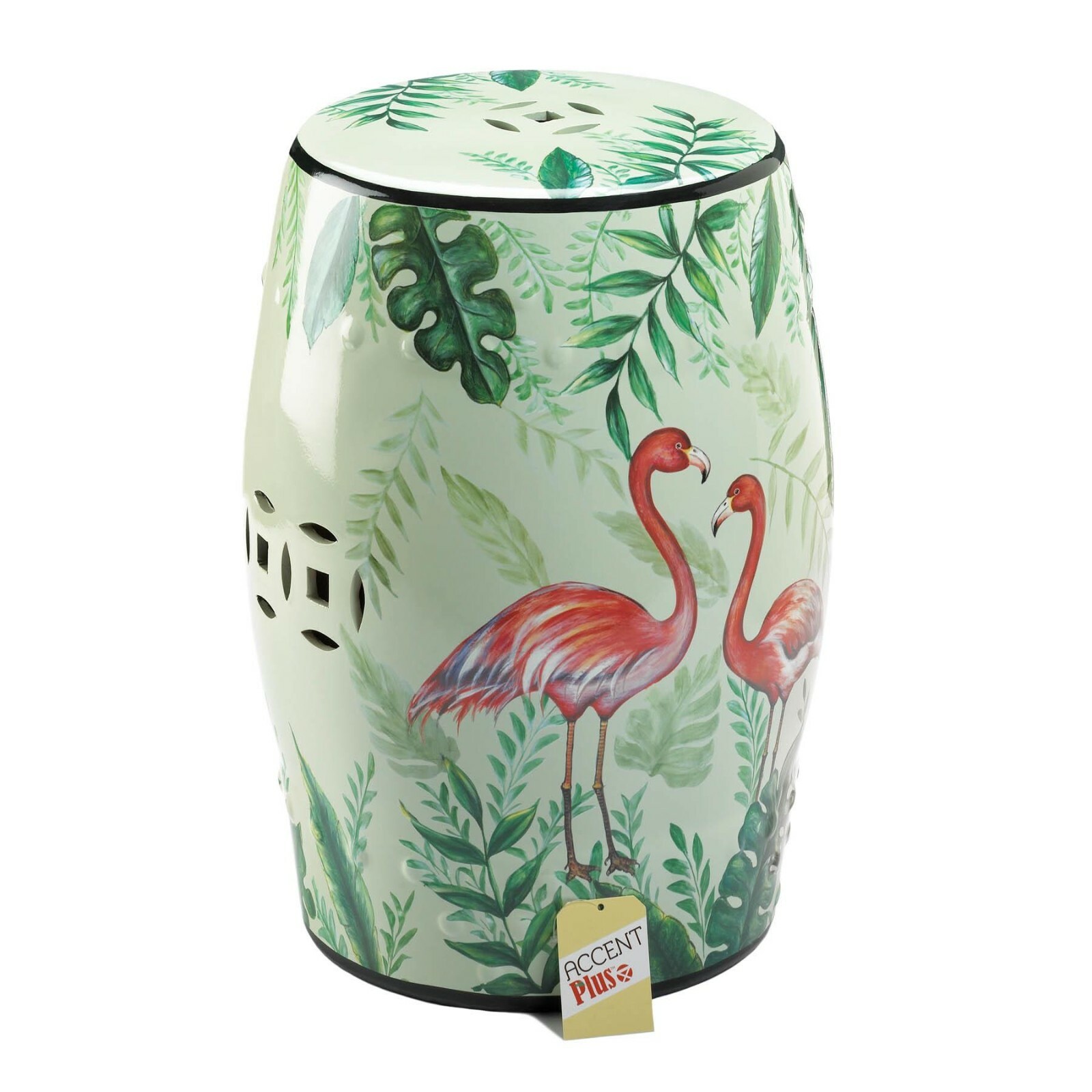 Flamingo Garden Stool Accent Plus Ceramic Coastal Style Side