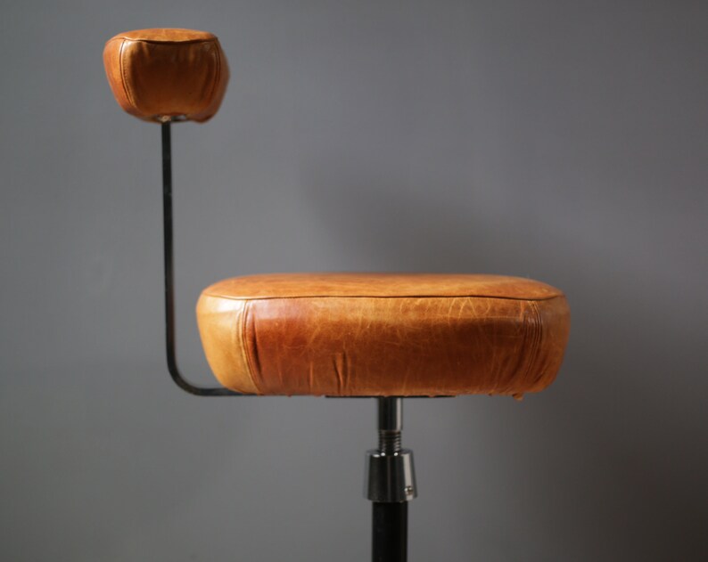 The shock mounts are all original and are still stable on the chair. This allows it to be used for sitting standing leaning for a variety of postures. The high swivel stool was developed for working or for having meetings at high tables.