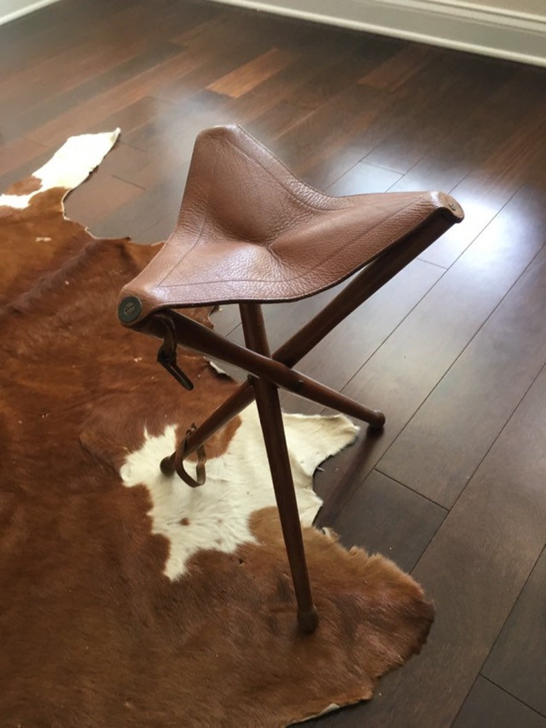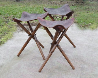 Leather Folding Tripod Camp Stool Chestnut Wood Faulk