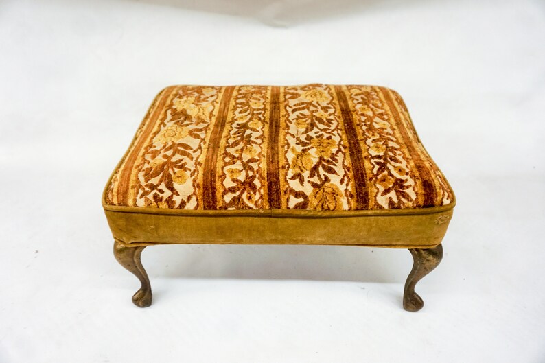 Vintage Upholstered Footstool W Brass Legs Little Canada Estate