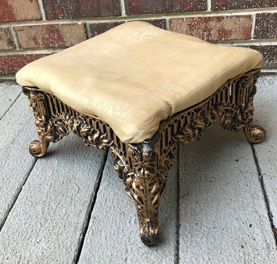 Foot Stool Antique Ivory Pattern Padded Seat And Gold Color Etsy