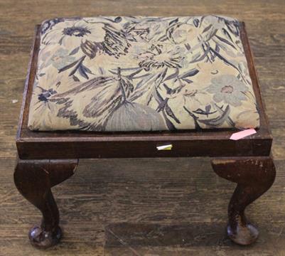 A Georgian Style Square Upholstered Foot Stool With Cabriole Legs