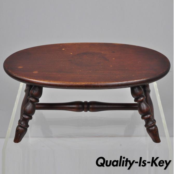 Small Antique Colonial Solid Walnut Wooden Footstool Stool Turn