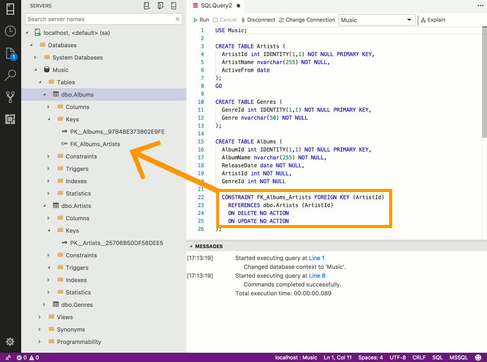 First argument is identity seed second argument is identity increment value. To create a foreign key in an existing table use the command alter table with add constraint. A foreign key is a field or collection of fields in one table that refers to the primary key in another table.
