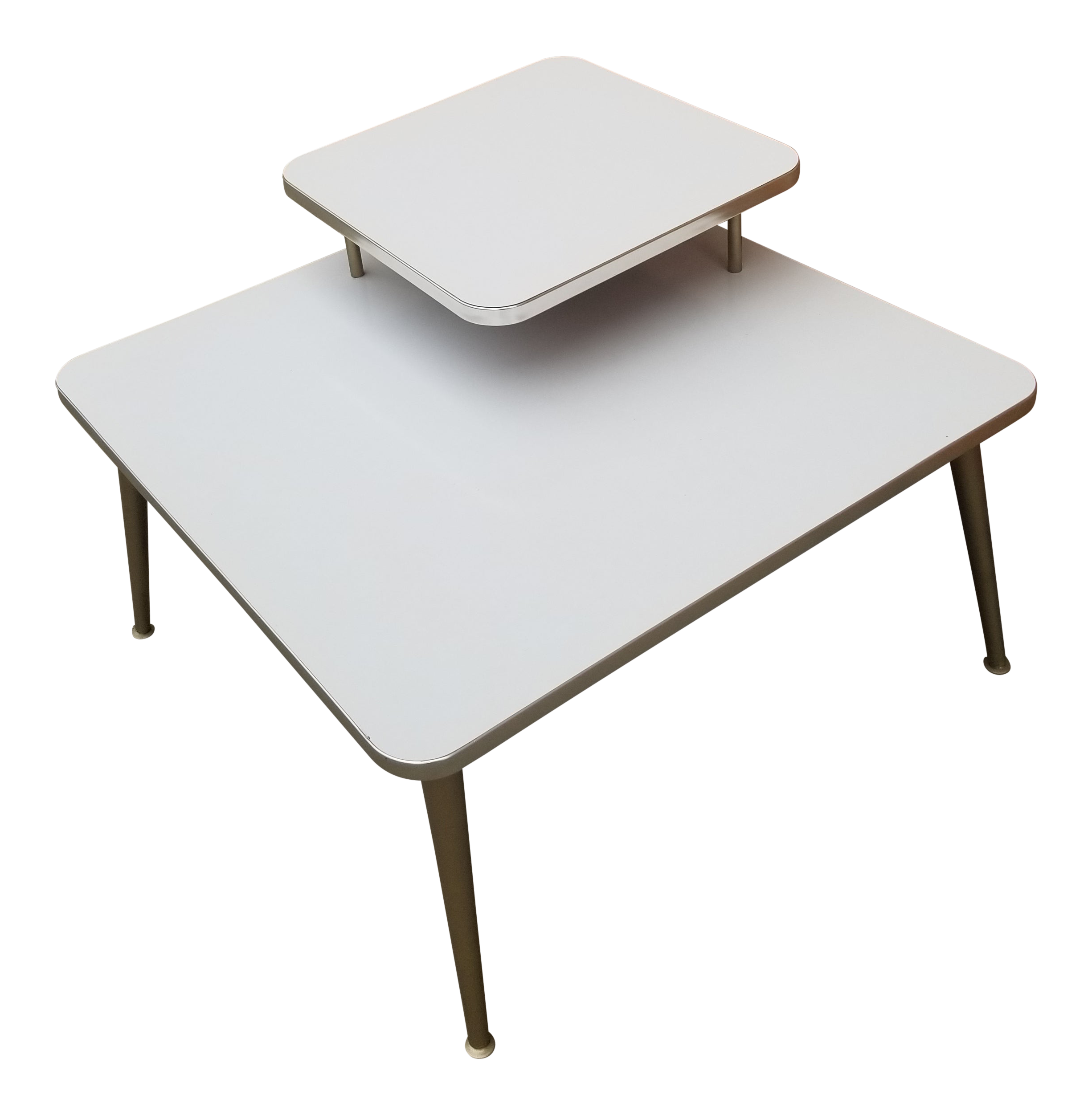 Mid Century Modern White Two Tiered Square Formica Table Chairish