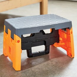 There is a problem adding to cart. Product title cosco 1 step molded folding step stool type 1a black orange and gray. The solid one piece top provides a large sturdy and stable standing area and holds up to 300 lbs.