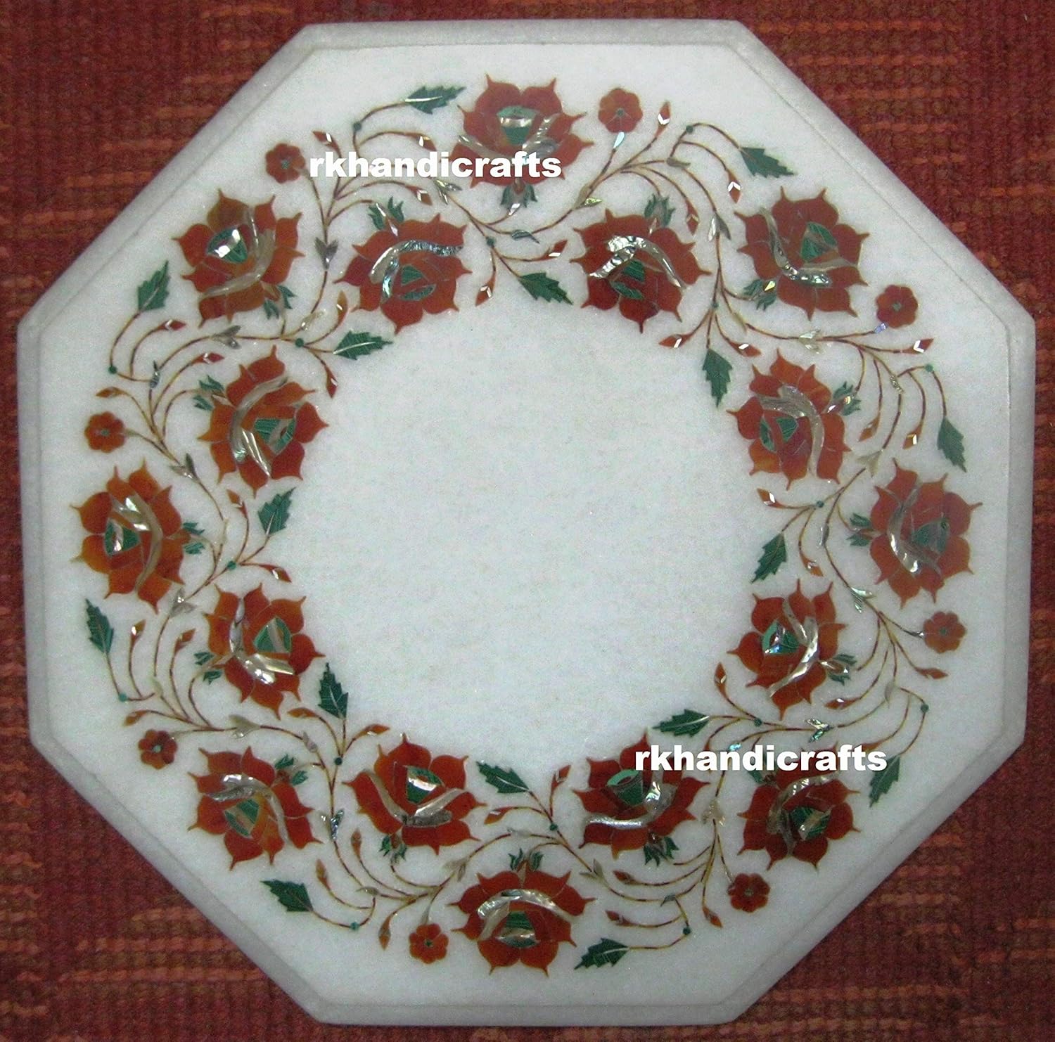 20 X 20 Inch White Marble Table Top Semi Precious Stone Inlay