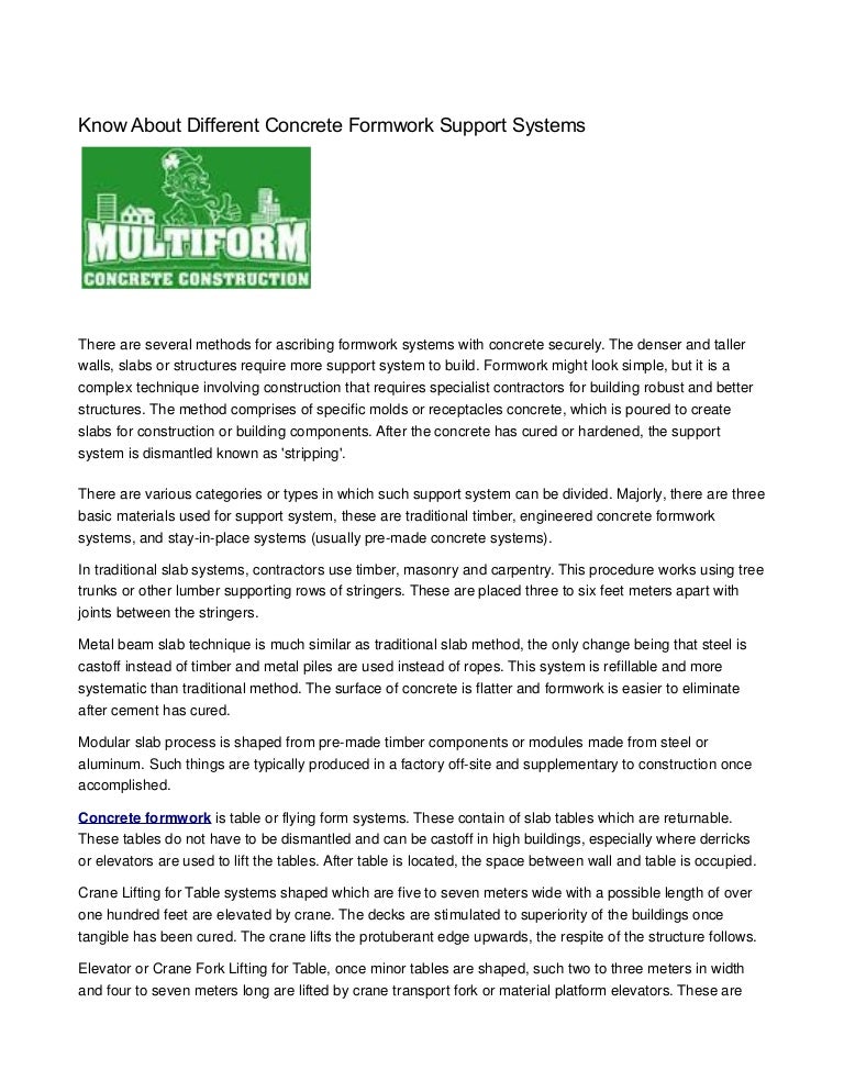 Know About Different Concrete Formwork Support Systems