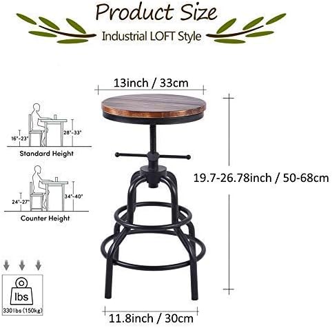 Amazon Com Lokkhan Industrial Bar Stool Swivel Wood Seat Metal