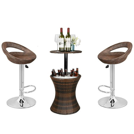 Zeny Adjustable Swivel Bar Stool Rattan Wicker Hydraulic Pub