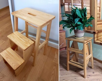 Folding Wood Step Stool Two Step Step Stool Wood Step Stool Etsy