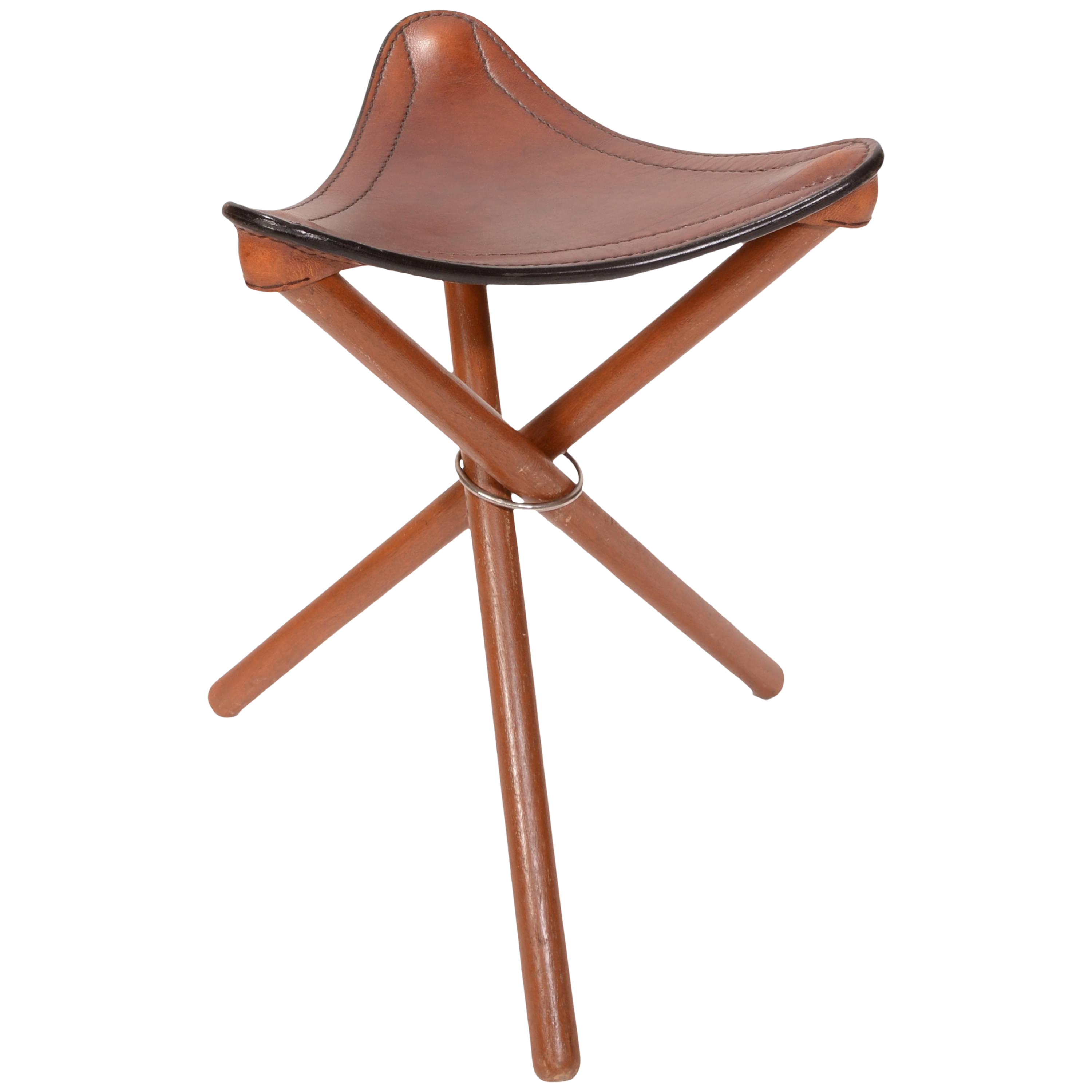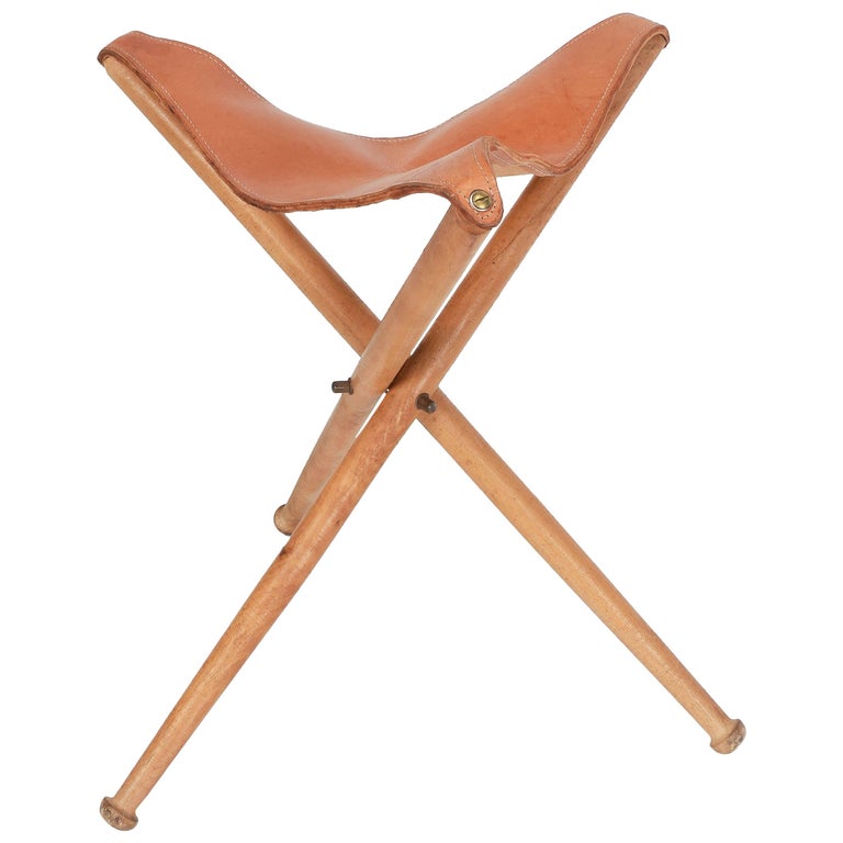 Swiss Tripod Folding Hunting Stool Leather And Beech 1940s At 1stdibs